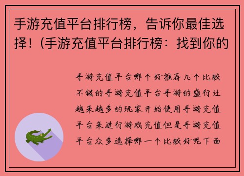 阅读手游安卓版下载的(安卓版手游下载指南)手游已经成为现代人生活中不可或缺的一部分。随着智能手机的普及,手游并不再是一个小众的娱乐方式,越来越多的人开始接触和游玩手游。那么,对于喜欢手游的玩家来说,在安卓...